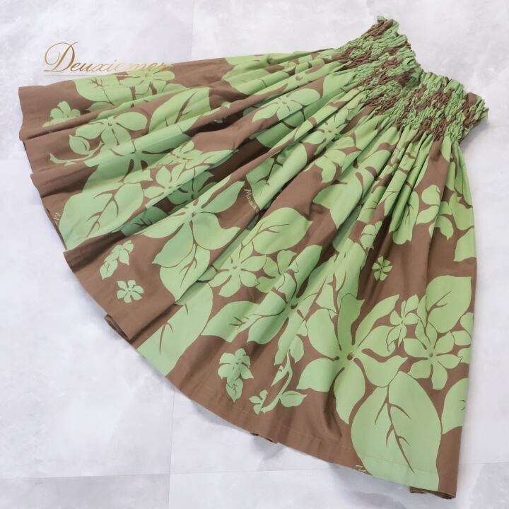 #フラダンス #パウスカート #Maunaloa #日本製 #フラダンス衣装 #ブラウン #グリーン #大人っぽい #ウエストゴム #ポリエステル65 #綿35 #ハワイ #ハワイアン #ダンス衣装 #ガールズファッション #レディースファッション #アロハスタイル #アウトドア #夏祭り #ENUTSU