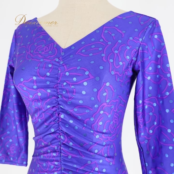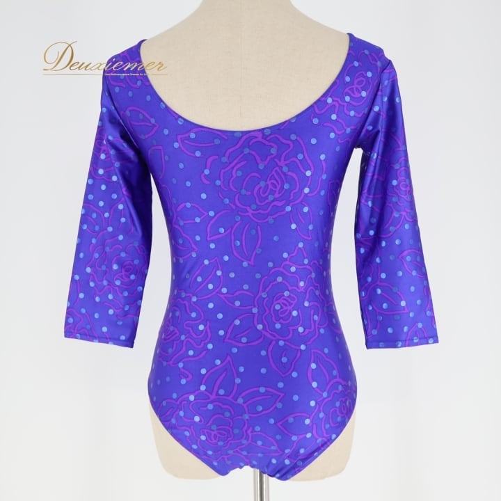 バレエ 衣装 レオタード ブルー系 チャコット Chacott トップス 花柄 水玉 ドット柄 社交ダンス レッスン 練習 伸縮 かわいい 鮮やか 華やか 七分袖 パープル系