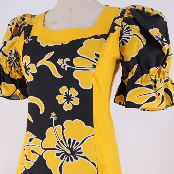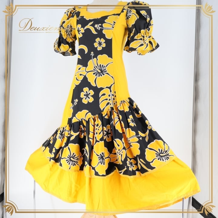 #フラダンス #フラダンス衣装 #ドレス #ワンピース #イエロー #ブラック #パフスリーブ #華やか #女性用衣装 #衣装 #イベント衣装 #ステージ衣装 #ハワイアンファッション #ダンス衣装 #アロハ #バンドドレス #夏コーデ #普段着 #おしゃれ #ENUTSU