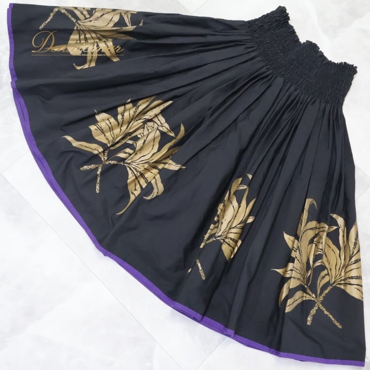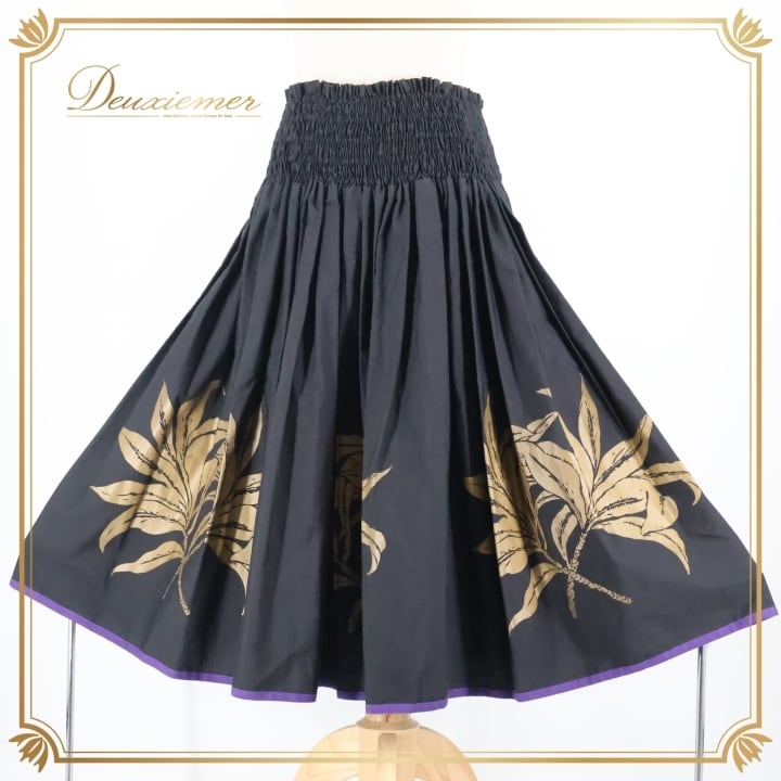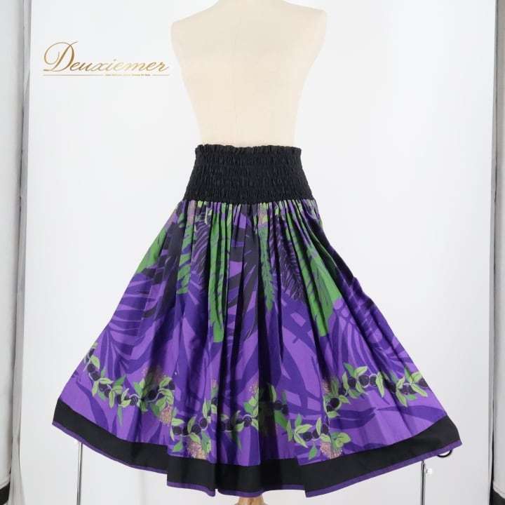 フラダンス 衣装 パウスカート アロハスタンダード ブラック系 パープル系 ALOHA STANDARDS リバーシブル ダブル 葉っぱ柄 木の実柄 モンステラ柄 日本製 かっこいい 華やか 鮮やか ハワイアン アロハ ハワイアンプリント フラ ダンス