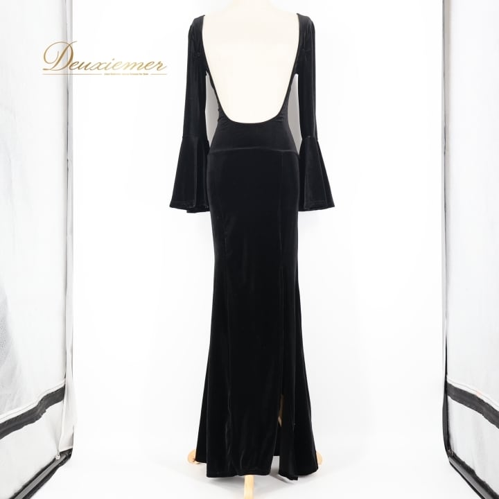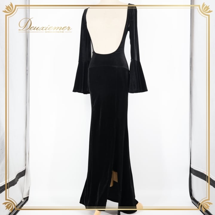 #ベリーダンス #バラディドレス #ダンス衣装 #アダルトコスチューム #ベロア生地 #オールブラック #光沢感 #シンプルデザイン #女性用 #スリットドレス #パーティー衣装 #ダンスパフォーマンス #高級感 #ボディライン #ストレッチ素材 #ファッション #コスチューム #エレガント #ストリートファッション #ENUTSU