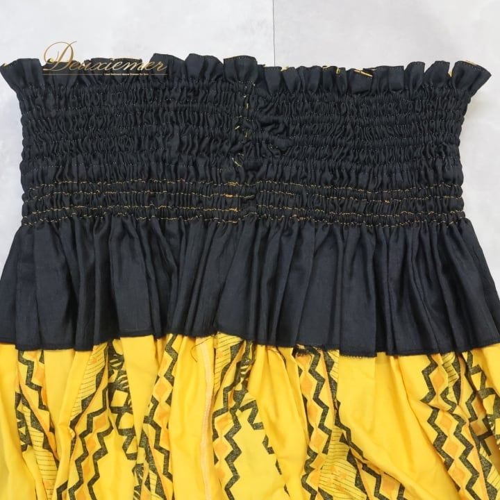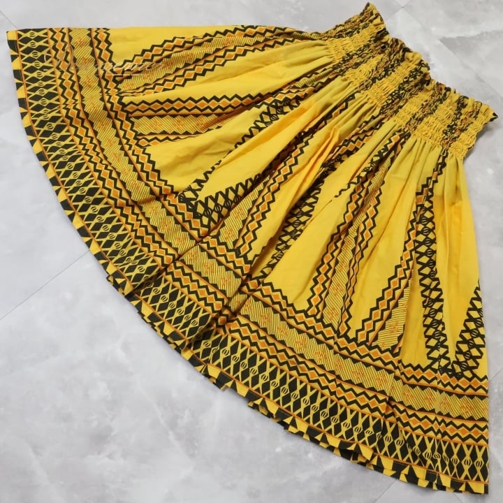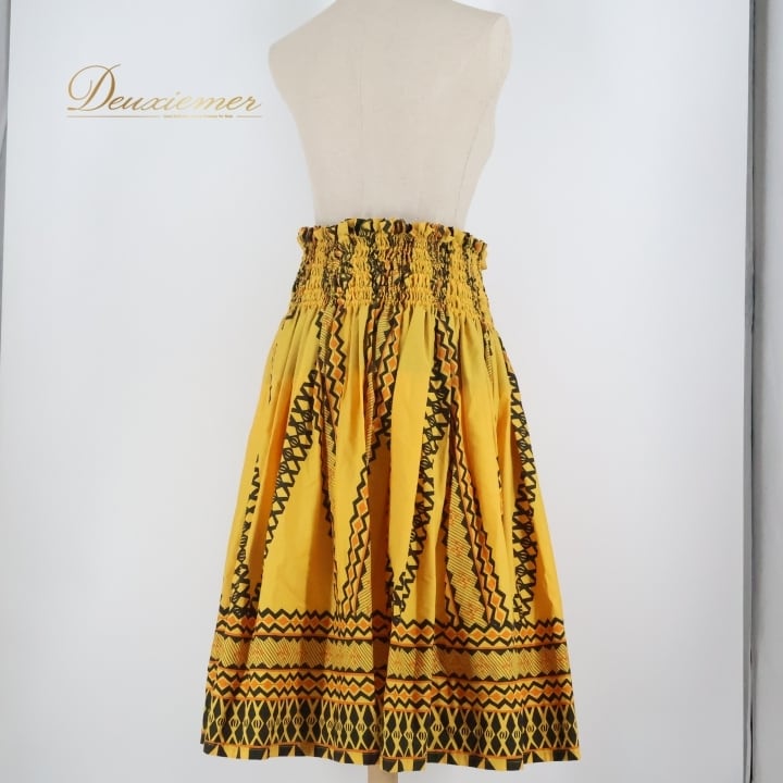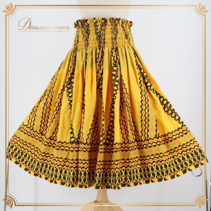 #フラダンス #パウスカート #ハワイアン #カヒコ柄 #イエロー #ブラック #ダンス衣装 #ウエストゴム #着心地 #鮮やかなカラー #トルソー #女性用 #ダンスウェア #フラ衣装 #フラダンス好き #夏コーデ #リゾートファッション #ハワイ #フラ文化 #ENUTSU