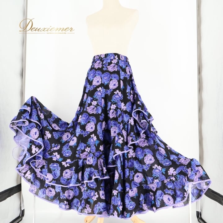 #フラメンコ #衣装 #スカート #ファルダ #ダンス衣装 #舞台衣装 #フラメンコスカート #華やか #紫 #ラメ #ウエスト #伸縮性 #背面ファスナー #PrimaBoutique #プリマブティック #女性用トルソー #ダンス #パフォーマンス #フラメンコダンス #コスチューム #ENUTSU