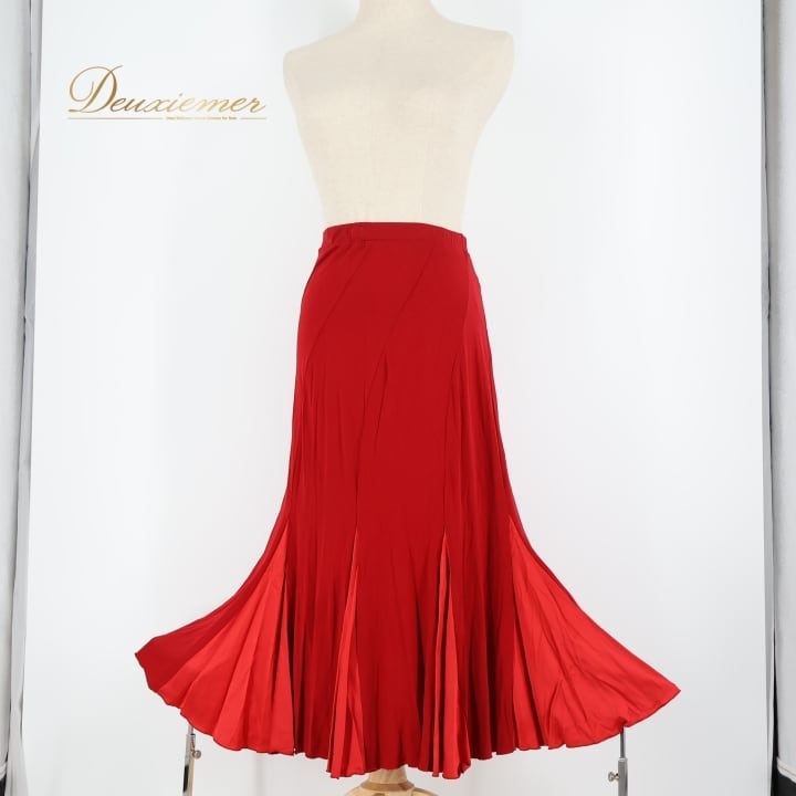 社交ダンス 衣装 スカート レッド系 チャコット Chacott 赤 レッスン 伸縮 ストレッチ 上品 華やか 練習 無地 シンプル 光沢 鮮やか ダンス衣装 柔らかい生地