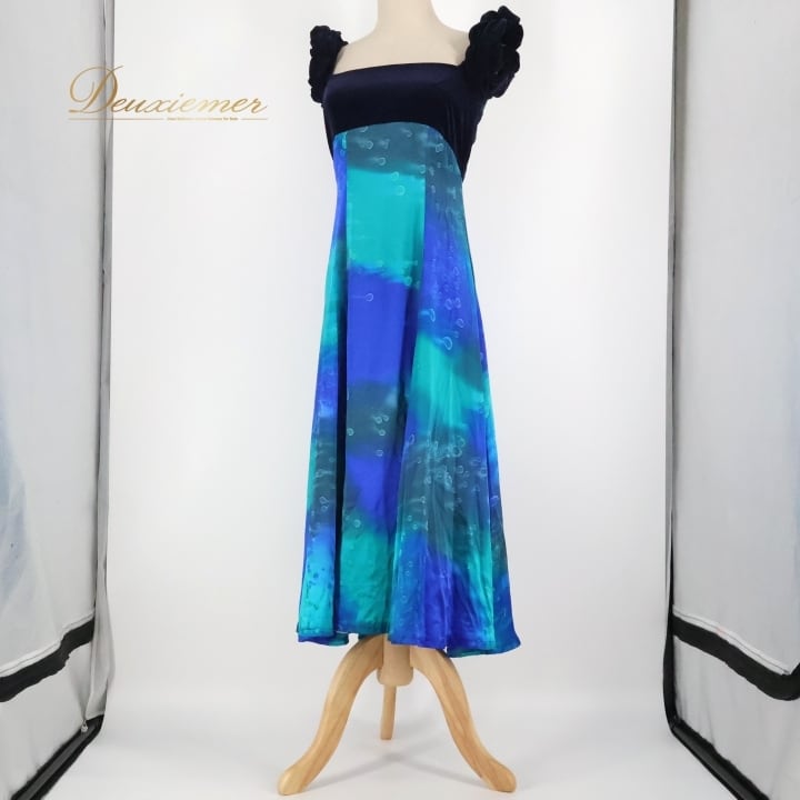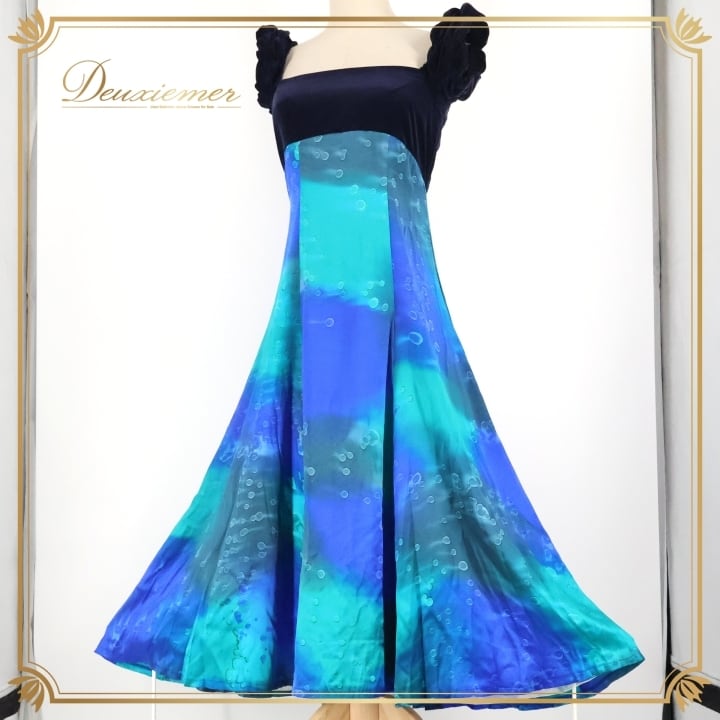 #フラダンス #フラダンス衣装 #ワンピース #ドレス #アロハスタンダード #ベロア生地 #ブルー #グリーン #ビーチファッション #ハワイアンファッション #パーティードレス #女性用トルソー #エレガント #おしゃれ #リゾートスタイル #カジュアル #特別な日 #夏のファッション #ファッション #ENUTSU