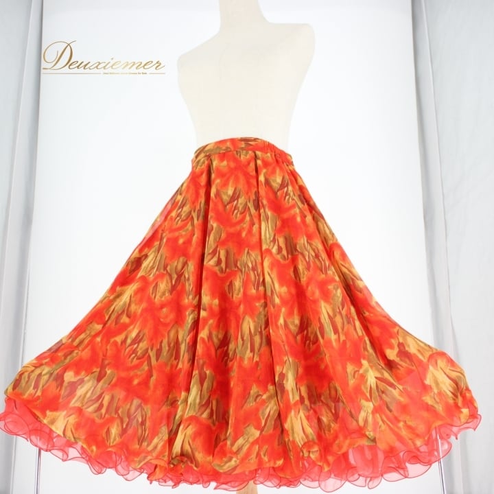 #社交ダンス #ダンス衣装 #スカート #日本製 #オレンジデザイン #ファスナー付き #伸縮性 #華やか #二重スカート #シルエット #トルソー #女性ファッション #ダンススタイル #ダンスパーティー #衣装コーデ #ダンス好き #ダンスレッスン #クールカジュアル #ファッションアイテム #スタイルアップ #ENUTSU