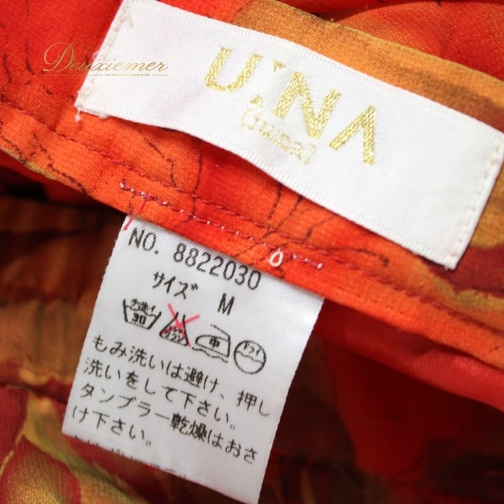 社交ダンス 衣装 スタンダード スカート レッスンウェア オールシーズン オレンジ系 U:NA ユーナ 練習着 派手 レッド系 花柄 かわいい 秋冬 スカート丈71cm ウエスト33cm~ ポリエステル製 女性用 おしゃれ カジュアル 練習用 パーティー 半袖 サイズM ふんわり 二重スカート かわいいデザイン 特別な日 未使用