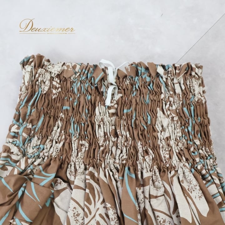 フラダンス 衣装 パウスカート ブラウン系 ナニプア 日本製 ハワイアンプリント アロハ フラ ダンス レッスン 練習 植物柄 nanipua グランジ加工 かわいい おしゃれ シングル スカート 大人っぽい ホワイト系 ブルー系 茶 白 水色 バルーンスカート ゴムウエスト 軽やか ファッション トレンド カジュアル おしゃれ着 レディース