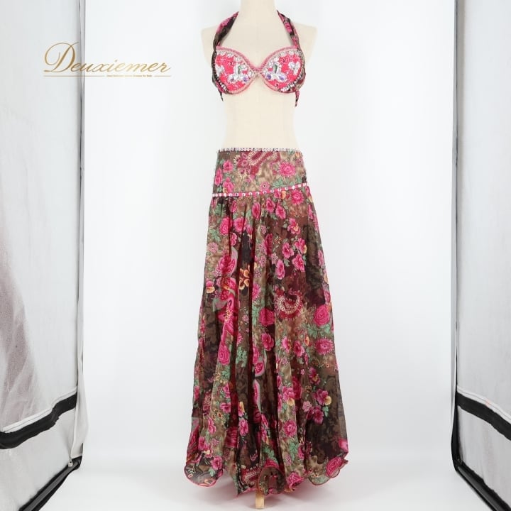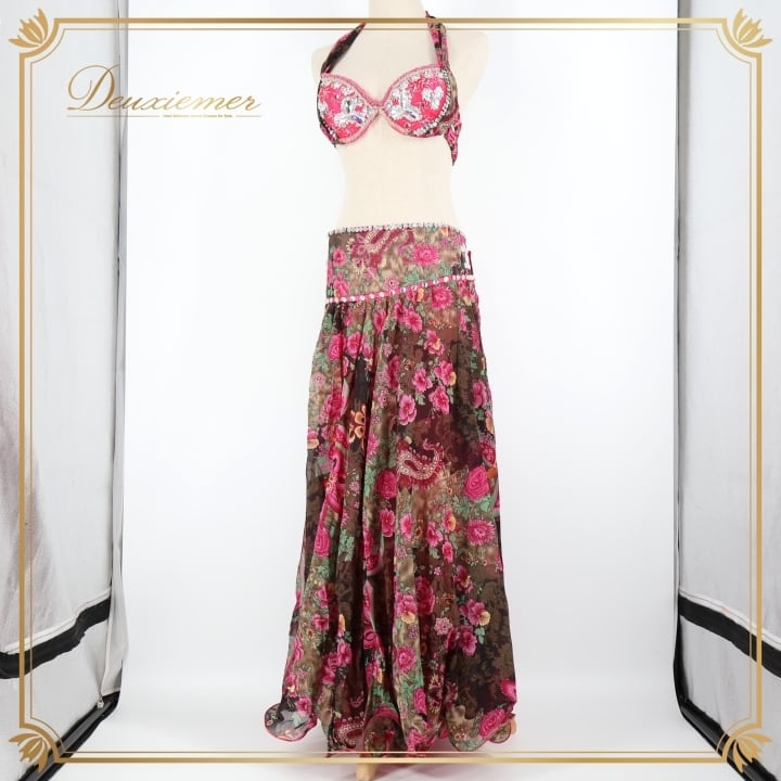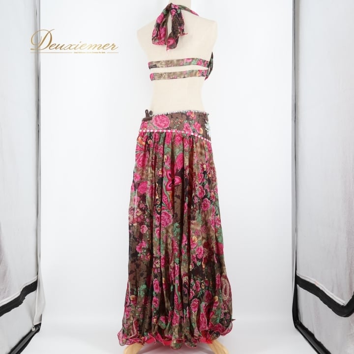 #ベリーダンス #オリエンタル衣装 #ダンス衣装 #衣装セット #ブラウン #花柄 #トルソー #女性用 #スカート #アーム飾り #舞台衣装 #ダンスパフォーマンス #エスニックファッション #ストリートファッション #ファッション #コスプレ #シルエット #オシャレ #バルーンスリーブ #ENUTSU