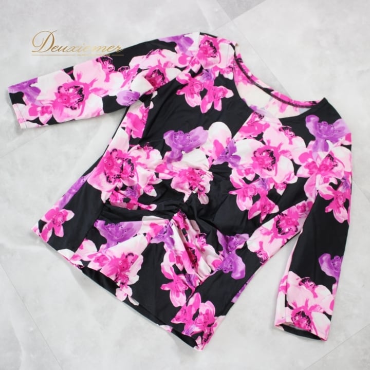 社交ダンス 衣装 スタンダード トップス レッスンウェア 花柄 黒 紫 ブラック系 ピンク系 派手 練習着 華やか パープル系 ホワイト系 白 長袖