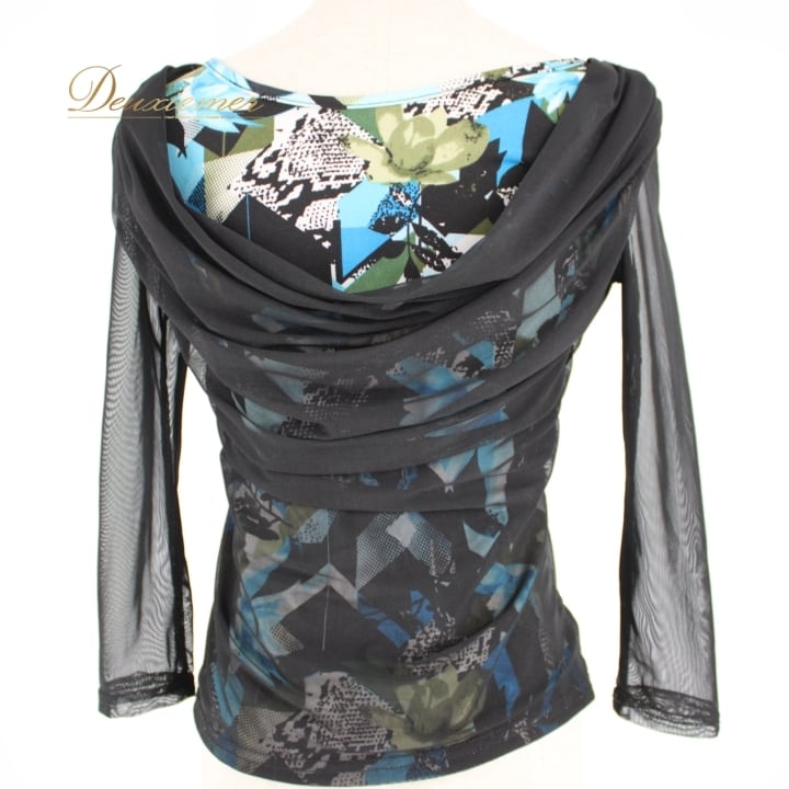 社交ダンス 衣装 スタンダード トップス レッスンウェア Leirena レイリーナ 黒 水色 白 緑 花柄 ブラック系 ブルー系 ホワイト系 グリーン系 伸縮性 おしゃれ いつでも着れる 薄手 軽量 華やか 上品 デザイン フォーマル用 新作 可愛い 大人 レディース トップス ファッション ストレッチ 透け感 おすすめ ダンス衣装 プロ用 教室用 試合用 お祝い用