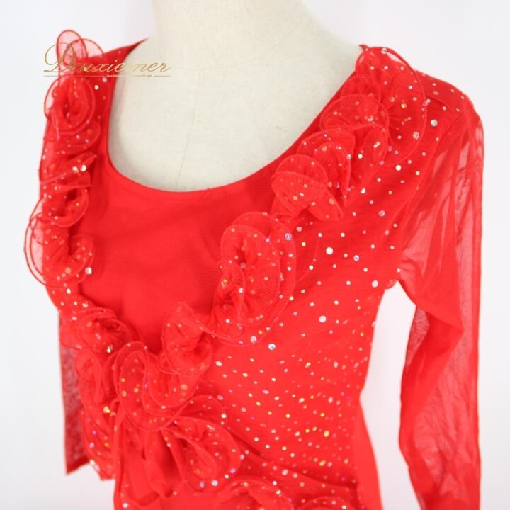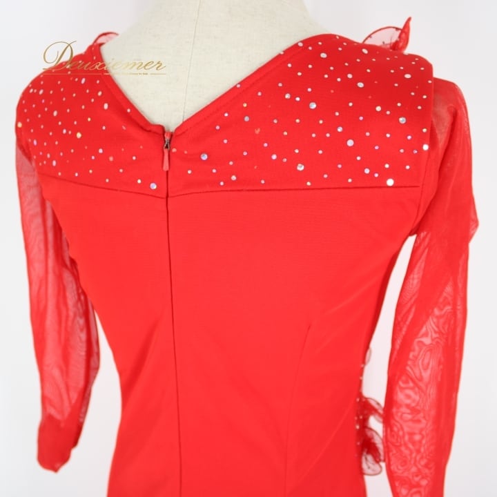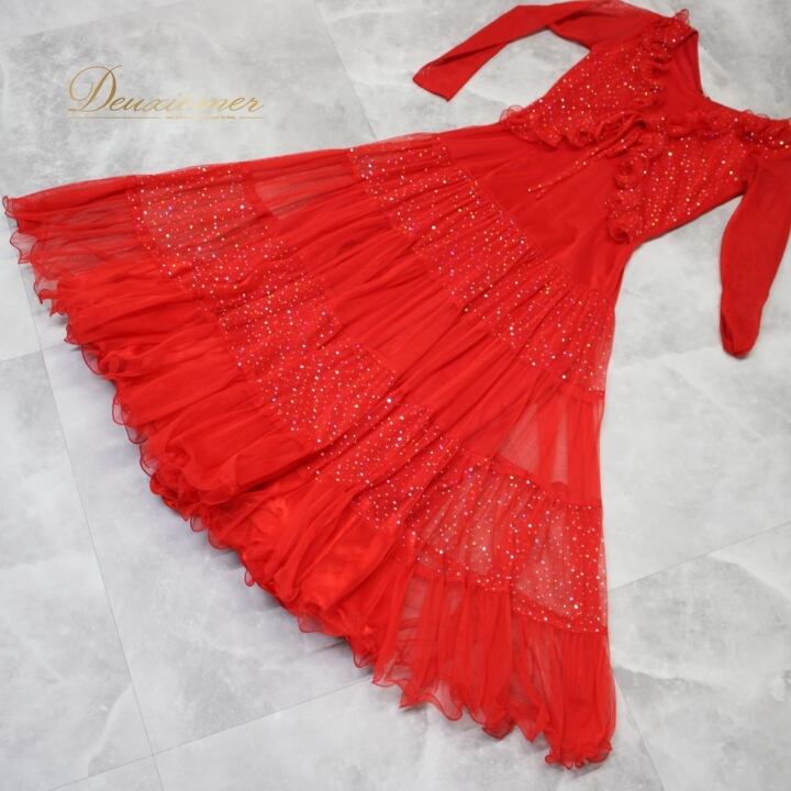 #社交ダンス #ダンス衣装 #プリマブティック #オールレッド #ホログラム #二重スカート #ダンスドレス #ファスナー付き #伸縮性 #優雅な動き #ダンスファッション #フラメンコ #パーティードレス #イベント衣装 #レッドドレス #ダンススタイル #ダンスコスチューム #女性用トルソー #ダンスパフォーマンス #ENUTSU