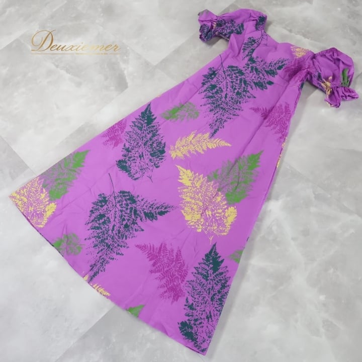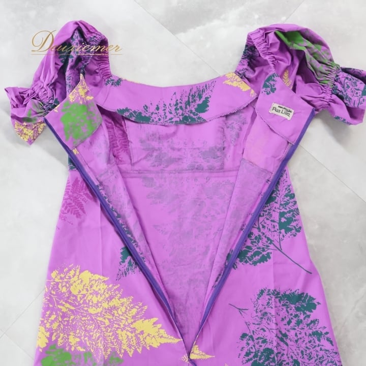 #フラダンス #衣装 #ワンピース #ドレス #パープル #ハワイアンプリント #パフスリーブ #かわいい #バイカラー #アロハ #ビーチファッション #フラダンス衣装 #ダンスドレス #夏スタイル #ハワイ #エスニックファッション #カラフル #コスチューム #特別な日 #ENUTSU