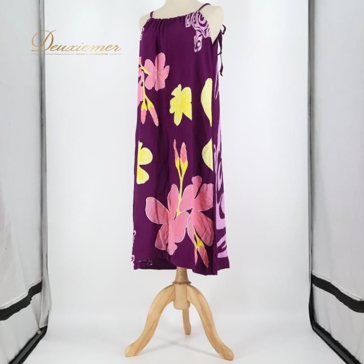 フラダンス 衣装 ワンピース ドレス パープル系 ハワイアンプリント アロハ 花柄 レッスン 練習 フラ ダンス キャミソールドレス 華やか 鮮やか かわいい 軽やか 上品 大人っぽい ピンク系 イエロー系 紫 ピンク 黄 鮮やかな ビーチリゾート フェス サマー ゆったり シンプル さっぱり フェミニン