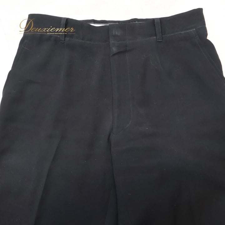 平置き実測:総丈約104.5cm、股上約25cm、股下約78.5cm、わたり幅約33cm、ウエスト約39.5cm