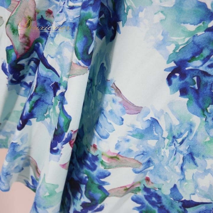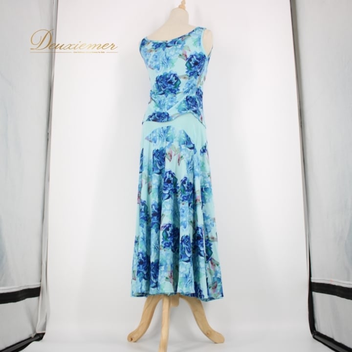 社交ダンス 衣装 スタンダード 上下セット ツーピース レッスンウェア パーティ衣装 Leirena レイリーナブルー系 青 水色 花柄 派手 トップス スカート セットアップ フラワー柄 軽量 伸縮性あり ウエストゴム ルームウェア おしゃれ お出かけ ダンス練習 衣装セット フォーマル スタイリッシュ 快適 かわいい 体型カバー