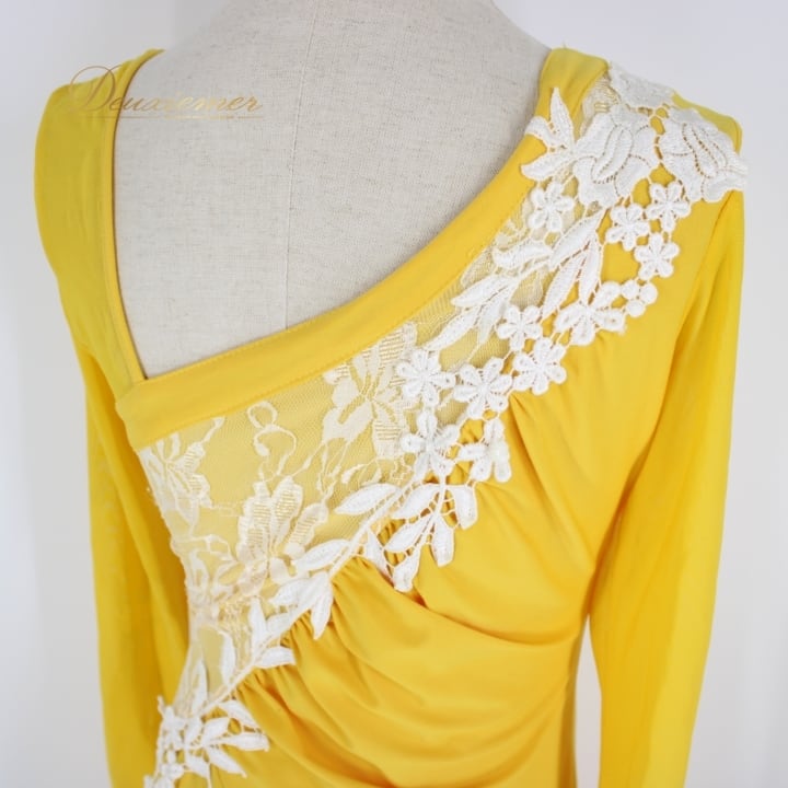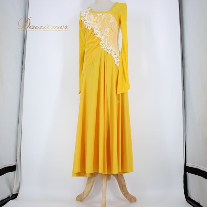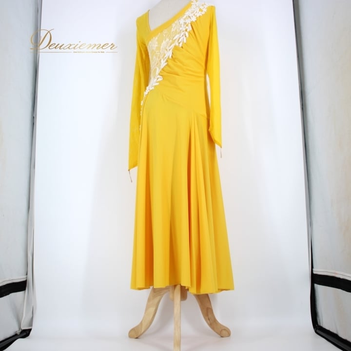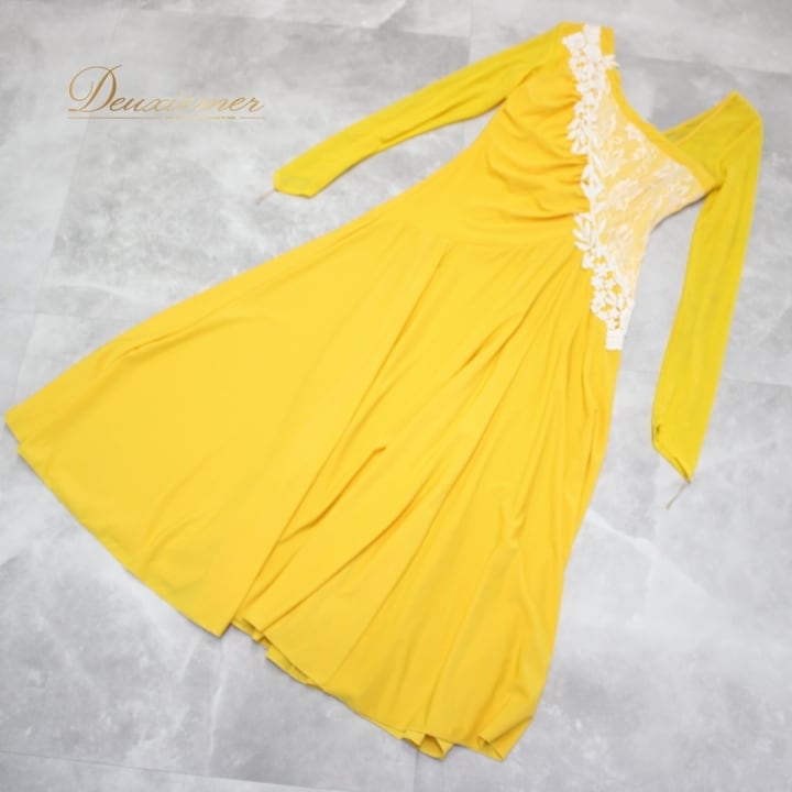 #社交ダンス #ダンス衣装 #ドレス #衣装 #フェミニン #レース素材 #イエロー #ホワイト #ポリエステル #伸縮性 #ダンスファッション #スリム #トルソー #レイリーナ #ダンスパートナー #パフォーマンス #キラキラ #女性用トルソー #スタイリッシュ #ENUTSU