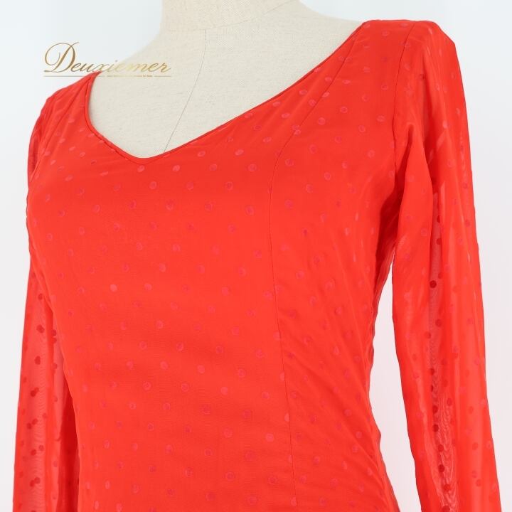 フラメンコ 衣装 ワンピース ドレス 赤 水玉 ボランテ フリル 透け感 長袖 豪華 高級感 おしゃれな ダンス 舞台 発表会 レッド系 フラメンコドレス 舞台衣装 演出用ドレス レディースダンス おしゃれ フリルワンピース 赤ドレス フラメンココスチューム 発表会衣装 ダンスウェア フェスティバル コスチューム