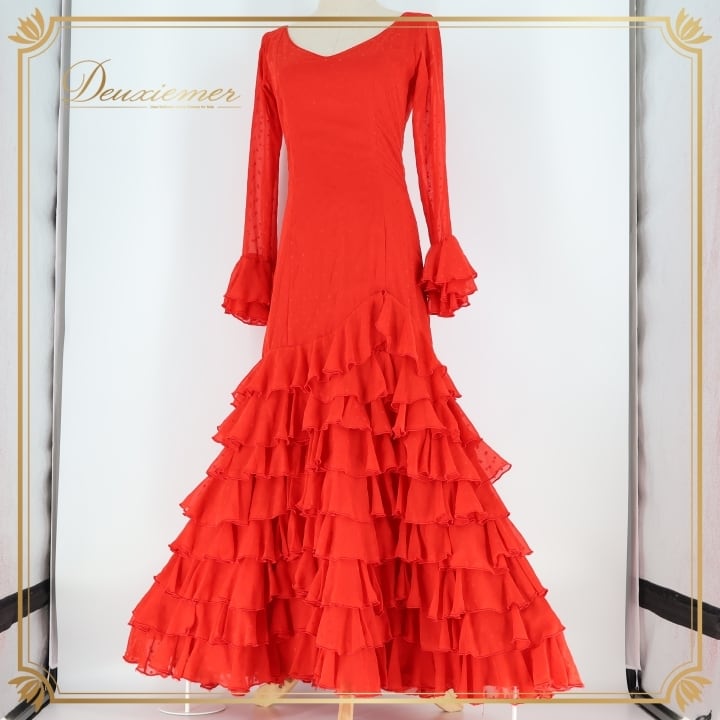 #フラメンコ #衣装 #ワンピース #ドレス #ダンス衣装 #赤いドレス #パフォーマンス #シージョ #舞台衣装 #女性用 #ファッション #ダンス #フラメンコダンス #春夏ファッション #エレガント #華やか #トルソー #未使用 #コスチューム #ENUTSU