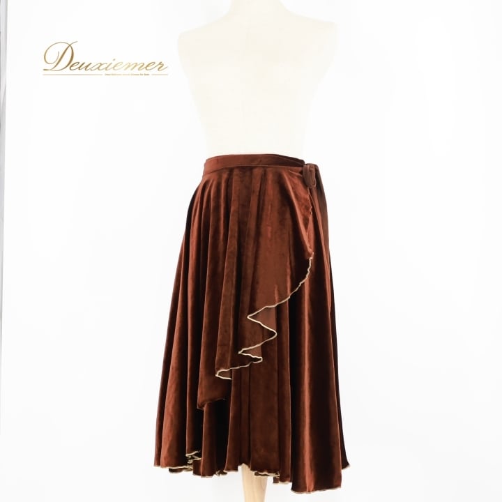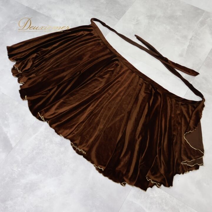 社交ダンス 衣装 スカート ブラウン系 チャコット Chacott 茶 巻きスカート ベロア 光沢 高級感 上品 レッスン 練習 かわいい 紐 ダンス衣装 柔らかい生地 ひらひら クリーム色
