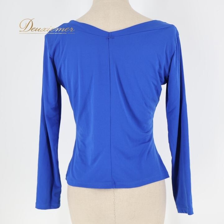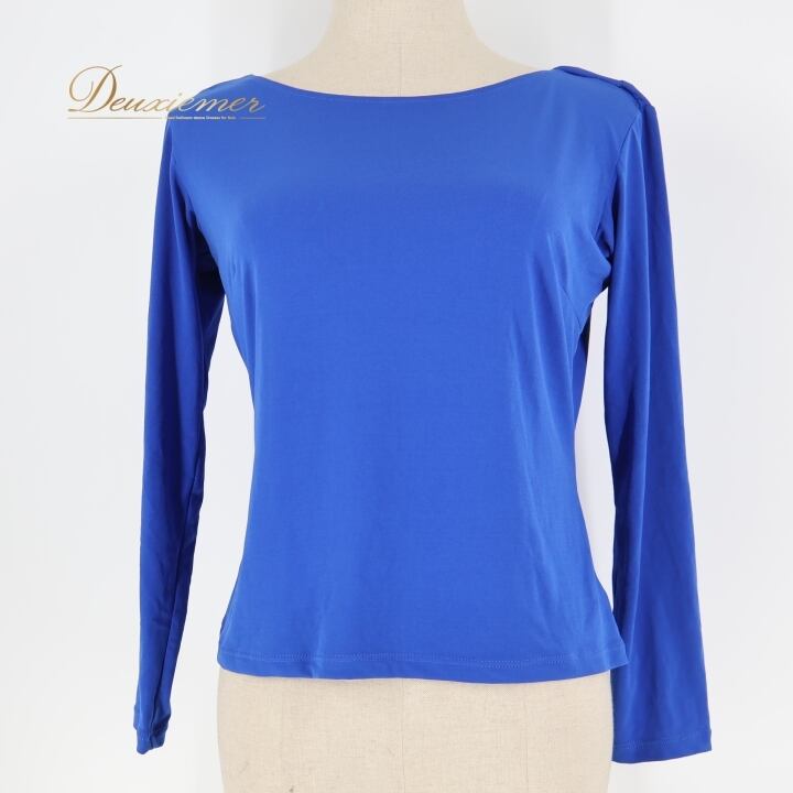 社交ダンス 衣装 トップス ブラウス ブルー系 チャコット Chacott 青 無地 レッスン 練習 伸縮 ストレッチ シンプル 長袖 鮮やか 上品 かわいい ダンス衣装