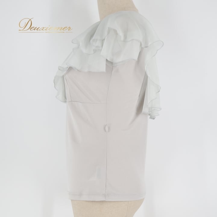 #社交ダンス #ダンス衣装 #ブラウス #トップス #Chacott #チャコット #グレー #フリル #上品 #ダンスファッション #パフォーマンス #軽量 #伸縮性 #ポリエステル #ポリウレタン #女性用 #ダンススタイル #衣装 #ダンス好き #ENUTSU