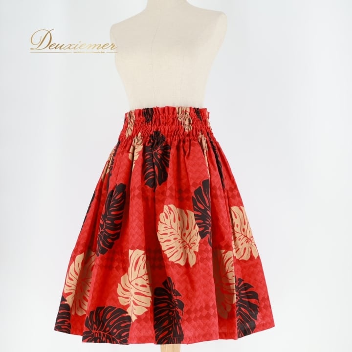 フラダンス 衣装 パウスカート レッド系 モンステラ柄 ハワイアンプリント アロハ フラ ダンス レッスン 練習 ハワイアン 鮮やか 華やか かわいい おしゃれ 上品 大人っぽい ブラック系 ベージュ系 赤 黒 植物柄 シングル スカート フェス トロピカル 薄手 フレアスカート スタイル 美しい カジュアル 海 リゾート