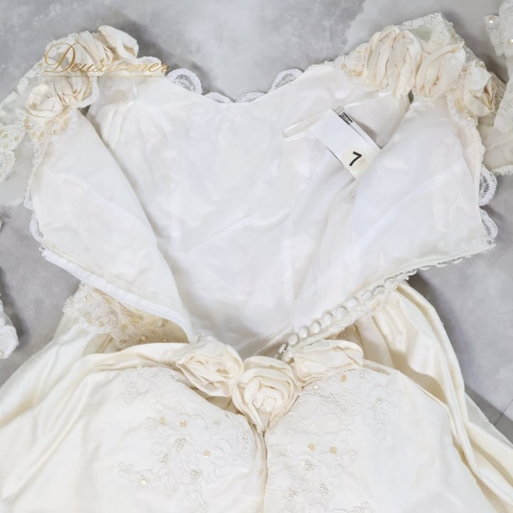 ウエディングドレス Elizabeth Emanuel エリザベスエマニュエル 結婚式 イギリス 英国製 ホワイト系 前撮り コスプレ 撮影 レース 花 アイボリー 中世 ロイヤル クラシック 結婚衣装 チュール ベール フォーマル パーティー ドレス プリンセススタイル ブランド エレガント 清楚 シンプル 上品 かわいい 高級感 ロマンティック パーティー用