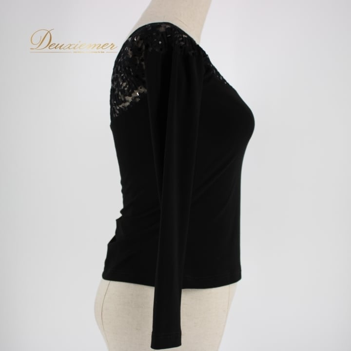 社交ダンス 衣装 スタンダード トップス レッスンウェア zdenka arko ズデンカ・アルコ 黒 レース ブラック系 長袖 練習着 シンプル カジュアル エレガント フィット感 セクシー 汎用性大 ダンスレッスン ウェア スポーツウェア ストレッチ感 バックスタイル コーディネート レッスン トップス ジャストサイズ クラシック シンプルデザイン