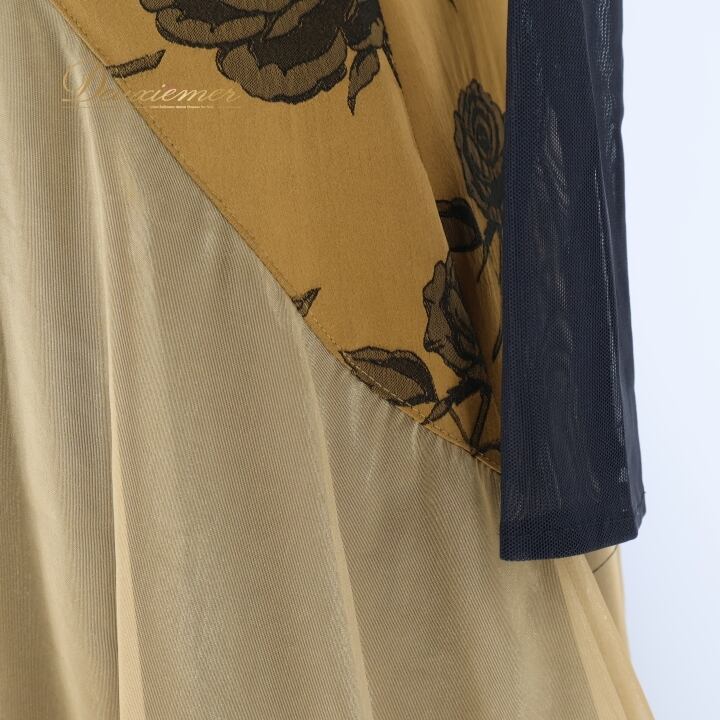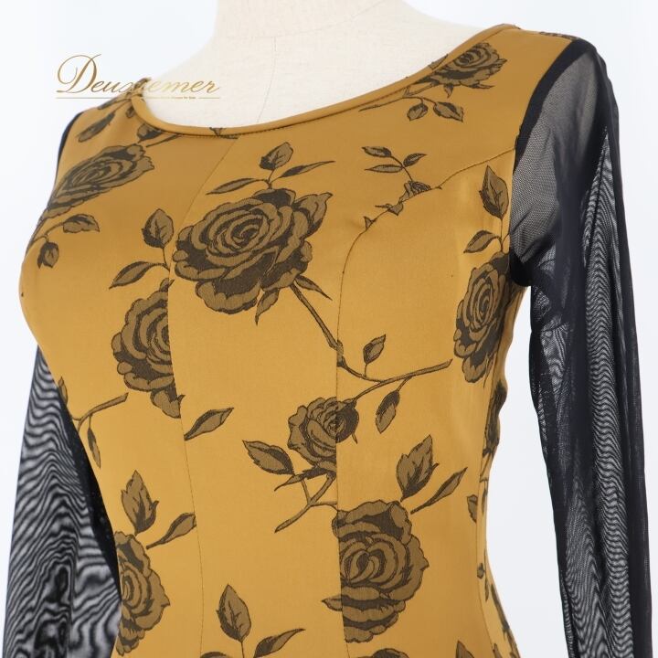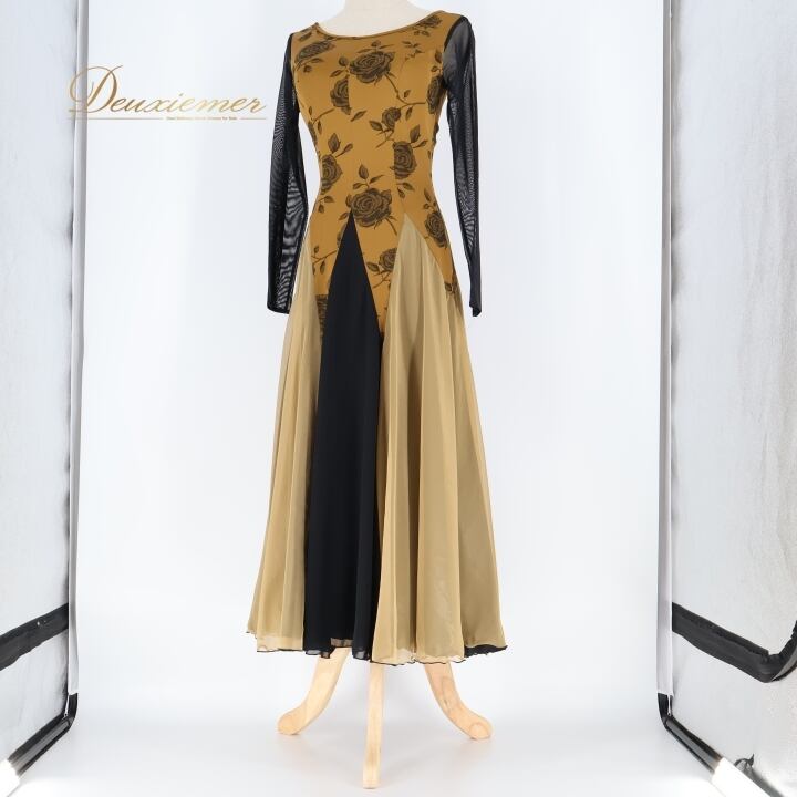 社交ダンス 衣装 ワンピース ドレス in the MOOD インザムード パーティ レース 花柄 高級感 上品 軽い ゴールド 黒 金 茶色 ゴールド系 ベージュ系 ブラウン系 フォーマル 上品 スタイリッシュ 日本製