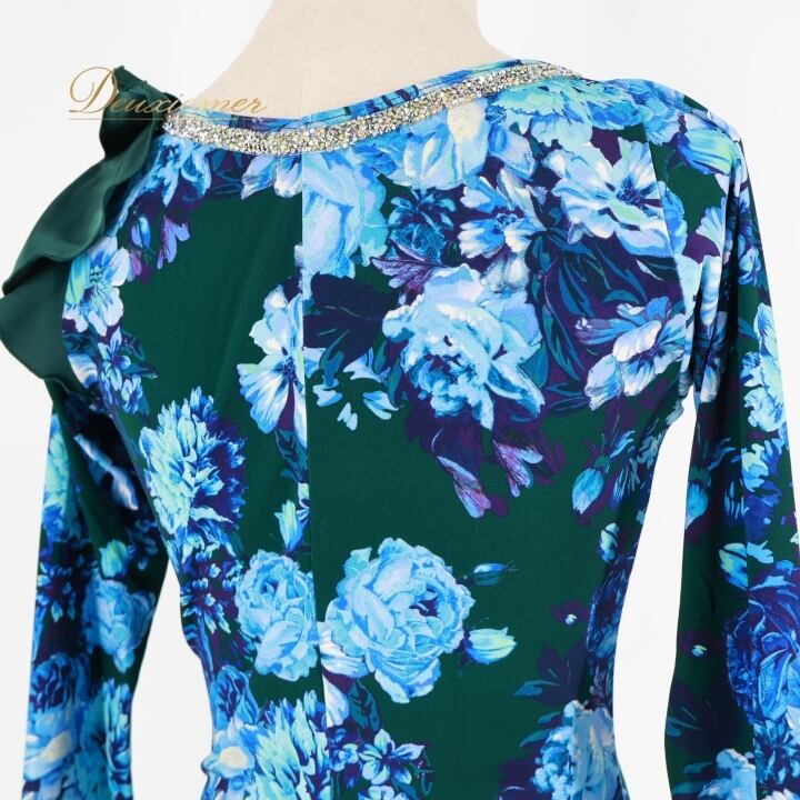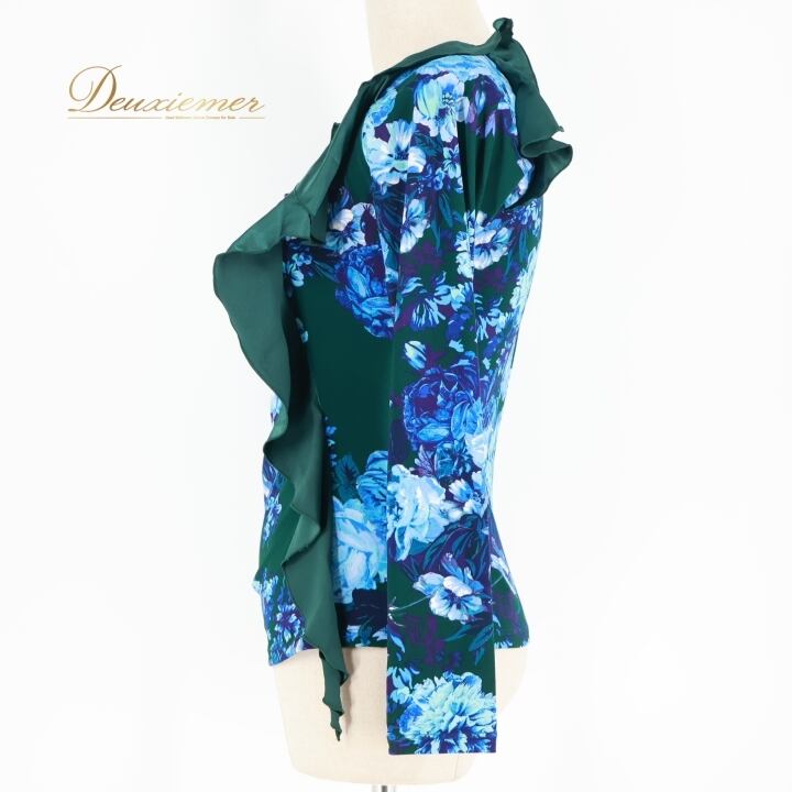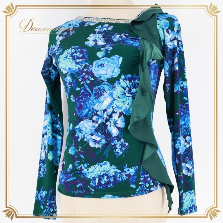 #社交ダンス #ダンス衣装 #ダンス #ブラウス #ダンストップス #日本製 #Chacott #チャコット #フリル #花柄 #上品 #伸縮性 #Sサイズ #オシャレ #グリーンブルー #ダンスウエア #衣装 #美しい #女性用トルソー #ENUTSU