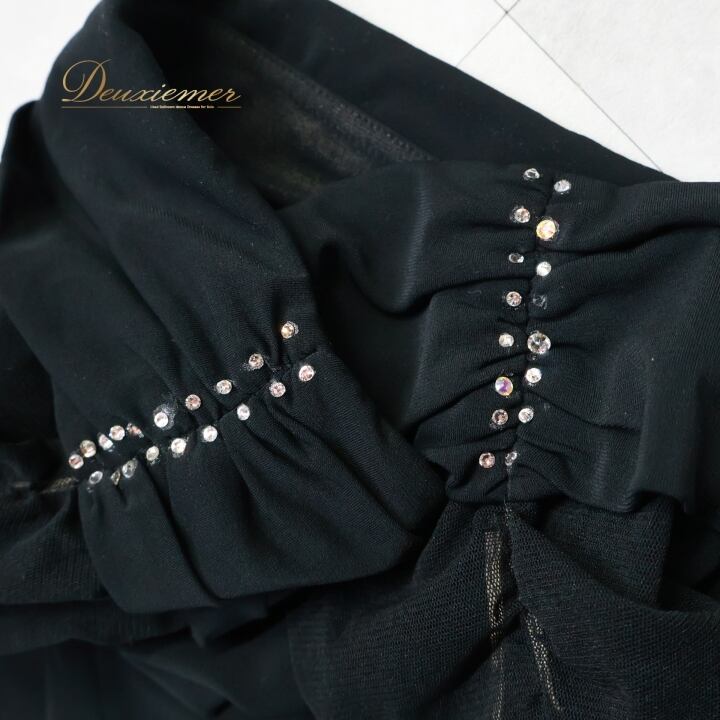 社交ダンス 衣装 トップス ブラウス ブラック系 チャコットロイヤルダンス Chacott ROYAL DANCE 黒 ラインストーン レッスン 練習 ストレッチ 伸縮 上品 シンプル キラキラ かわいい 長袖 ダンス衣装 パーティー 透け感