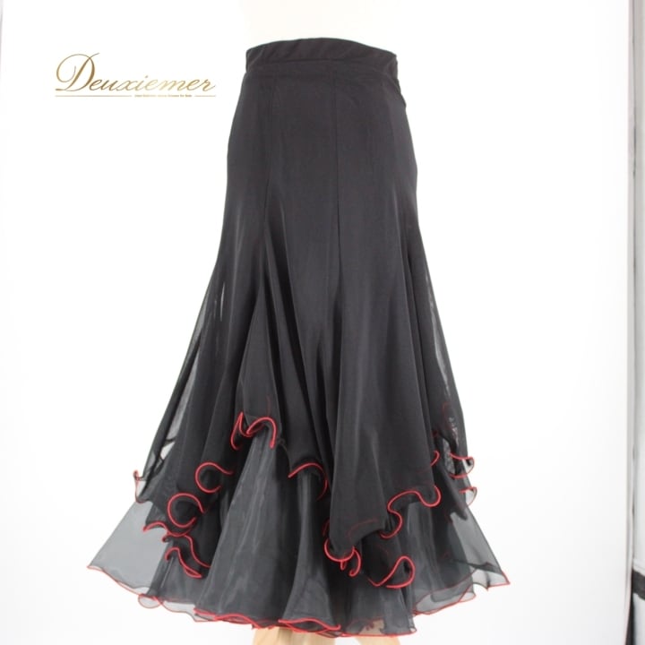 #社交ダンス #ダンス衣装 #スカート #ダンスファッション #ダンススタイル #ブラックレッド #ウエストゴム #伸縮性 #ポリエステル #ポリウレタン #ダンス映え #ダンス好き #ダンスイベント #女性トルソー #ミディアムスカート #クールスタイル #おしゃれ #ダンスウェア #社交ダンス衣装 #Roger #ENUTSU