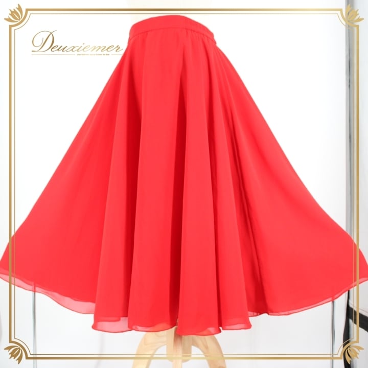 社交ダンス 衣装 スタンダード スカート レッスンウェア オールシーズン Mamin マーミン 赤 レッド系 無地 シンプル 練習着 派手 上品 素材 ポリエステル 軽量 フレアスカート ダンスウェア エレガント 決まりやすい 着回し コーディネート 簡単 おしゃれ おすすめ