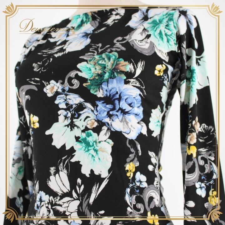 #社交ダンス #ダンス衣装 #ダンスファッション #トップス #日本製 #花柄デザイン #ブラック #伸縮性 #女性用 #トルソー #カスタムフィット #エレガント #パーティー #舞台衣装 #ダンススタイル #シンプルシック #ダンスイベント #ファッション #オシャレ #ENUTSU