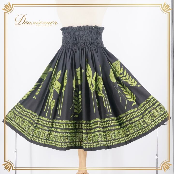 #フラダンス #パウスカート #フラダンス衣装 #マウナロア #タパ柄 #日本製 #ダンス衣装 #ウエストゴム #総丈68cm #おしゃれ #ブラックグリーン #ポリエステル #綿 #女性用トルソー #ダンスファッション #衣装 #フラ #ハワイアンフラ #ダンスレッスン #ENUTSU