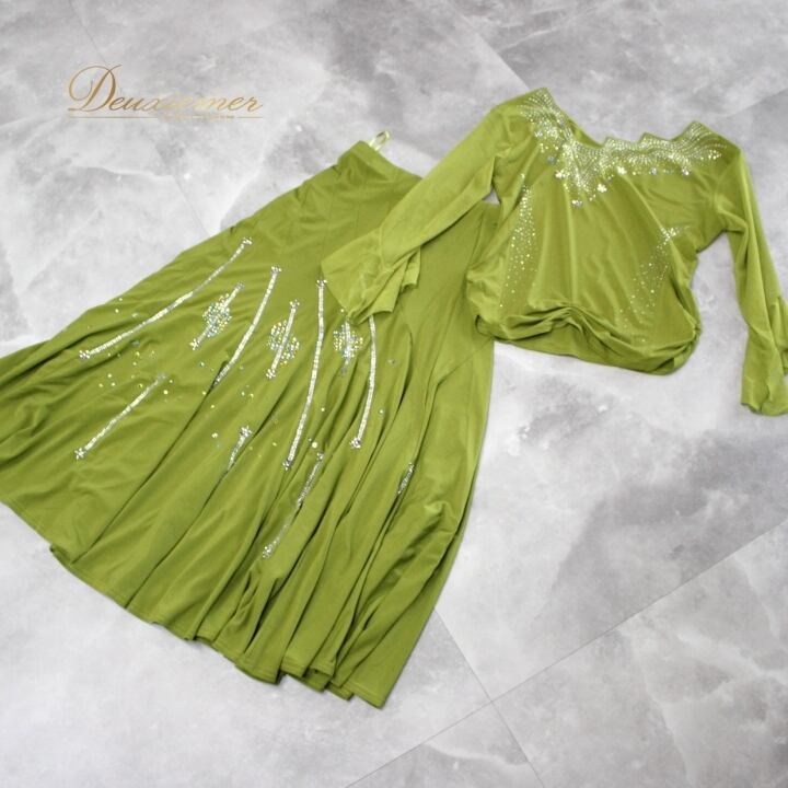 #社交ダンス #ダンス衣装 #セットアップ #ポリエステル #ポリウレタン #伸縮性 #ウエストゴム #エルプラト #グリーン #ラインストーン #ダンスファッション #女性用トルソー #Mサイズ #ダンスコスチューム #ダンスパフォーマンス #華やか #落ち着き #トレンド #新作 #キラキラ #ENUTSU