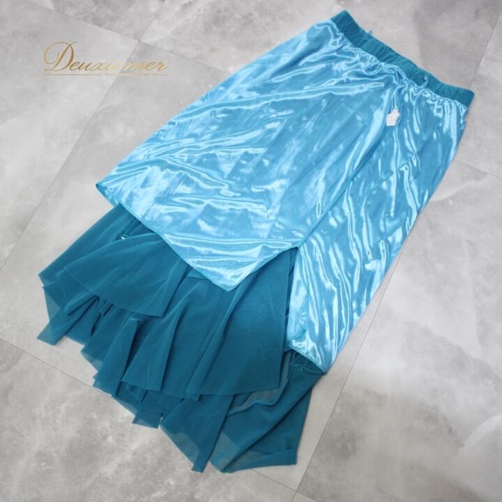 #社交ダンス #ダンス衣装 #スカート #ライトブルー #ウエストゴム #伸縮性 #ポリエステル #ポリウレタン #ダンスファッション #ダンススタイル #パフォーマンス衣装 #女性用トルソー #ダンススカート #おしゃれ #ダンス用 #ファッション #魅力的 #涼やか #スタイル #ENUTSU