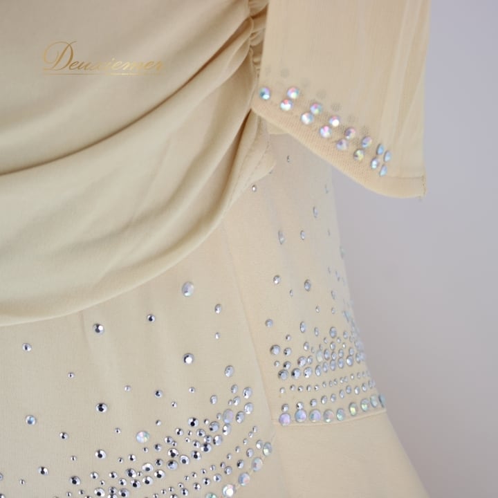 #社交ダンス衣装 #ダンスファッション #ダンス衣装 #セットアップ #ライトベージュ #ラインストーン #ウエストゴム #伸縮性 #トルソー #ダンススタイル #女性用 #エレガント #ダンスコスチューム #ポリエステル #ポリウレタン #フィット感 #ダンスウェア #スタイリッシュ #ファッション #イベントコスチューム #ENUTSU