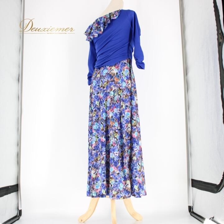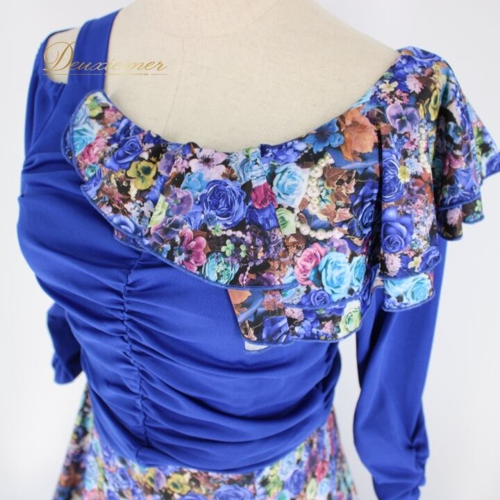 #社交ダンス #ダンス衣装 #ダンスドレス #ブルー #花柄 #トルソー #パーティー衣装 #春夏ファッション #フィットネス #ファッション #ダンスパフォーマンス #ダンススタイル #コスチューム #ポリエステル #ポリウレタン #おしゃれ #ドレスアップ #衣装販売 #体型カバー #ENUTSU