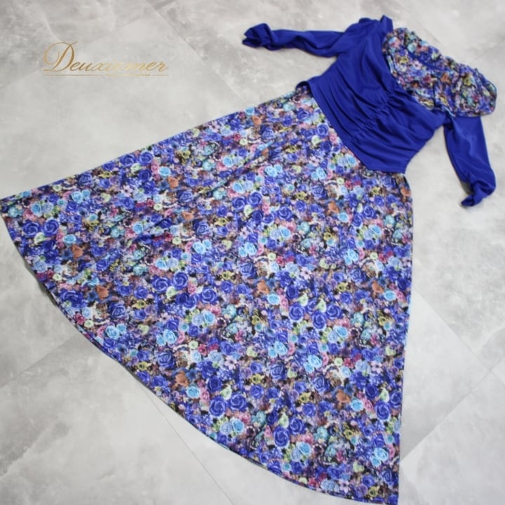 ▽ブルーを基調とした花柄ドレス