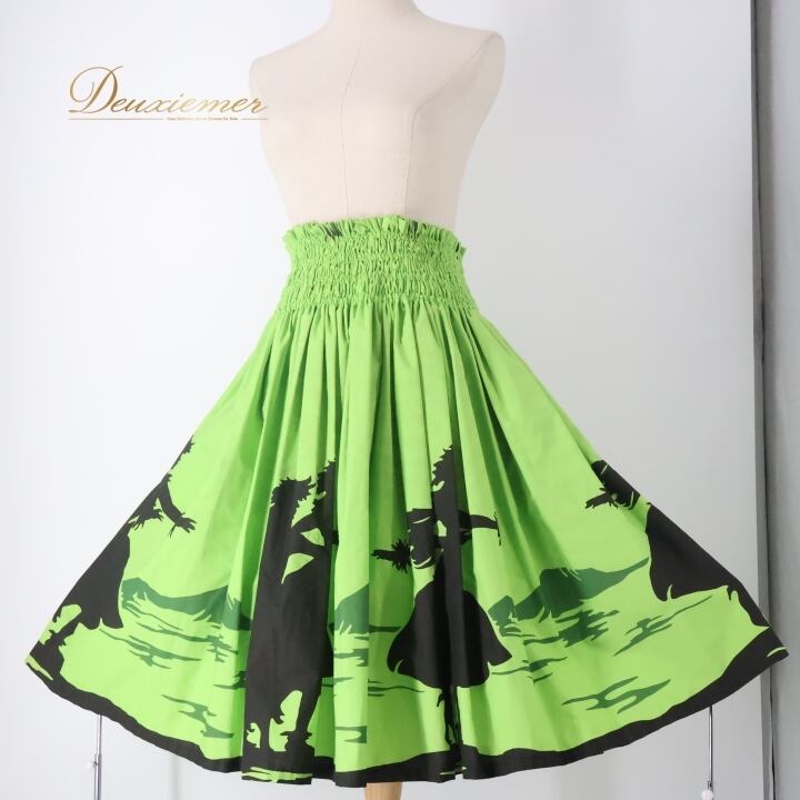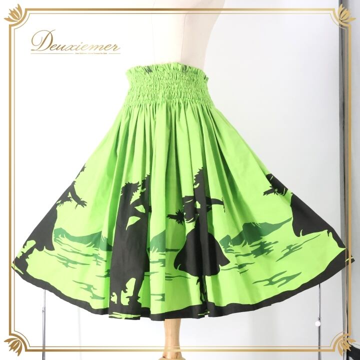 フラダンス 衣装 パウスカート グリーン系 ハワイアンプリント ダンサー柄 アロハ フラ ダンス レッスン 練習 ブラック系 黄緑 黒 ハワイアン 華やか 鮮やか かわいい おしゃれ シングル スカート ふんわり フラダンス衣装 パウスカート 鮮やかなグリーン ダンサー柄 練習着 可愛いスカート トロピカルスタイル ハワイアンビーチ リゾートファッション レッスン用 ヒラヒラ プリント スカートファッション