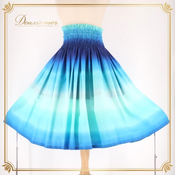 #フラダンス #パウスカート #Kapalili #カパリリ #日本製 #ブルー #グラデーション #フラダンス衣装 #ダンス衣装 #アロハ #ハワイアン #リゾートファッション #ウエストゴム #ポリエステル #綿 #軽やか #おしゃれ #ファッション #夏コーデ #ENUTSU