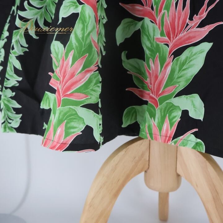 フラダンス 衣装 ワンピース ドレス ブラック系 マーメイドライン エムエムジェイ 日本製 ハワイアンプリント アロハ フラ ダンス MermaidLine MMJ レッスン 練習 ベロア グリーン系 レッド系 黒 緑 赤 フラワープリント 花柄 植物柄 華やか 高級感 上品 おしゃれ リゾート ダンス衣装 エレガント ステージ用 フェスティバル