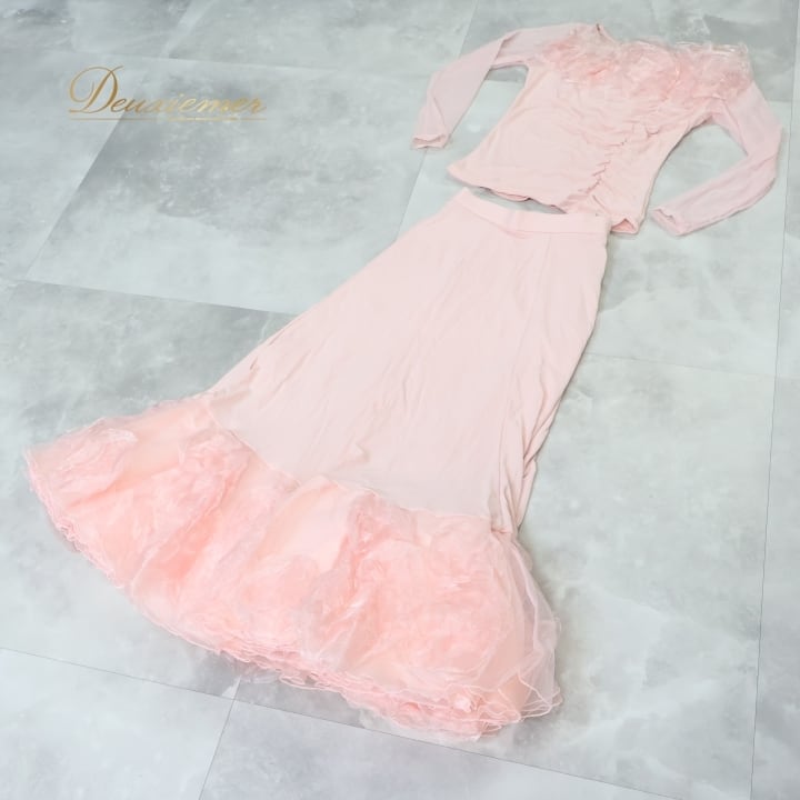 #社交ダンス #ダンス衣装 #ツーピース #セットアップ #ピンク #フリル #女性らしい #Chacott #チャコット #日本製 #レーヨン #ポリエステル #スカート #トップス #踊る喜び #ダンスファッション #パーティー服 #おしゃれ #スタイルアップ #ダンススタイル #ENUTSU