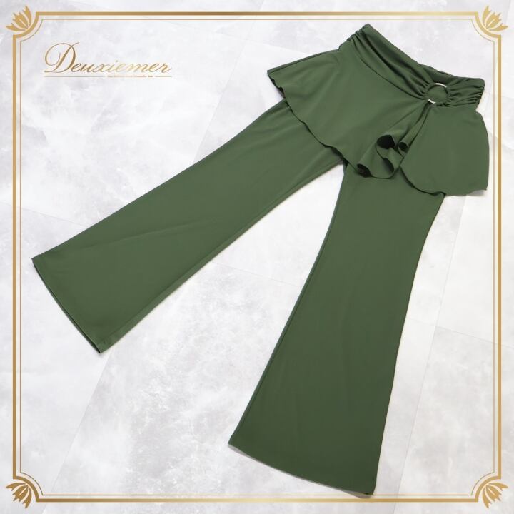 社交ダンス 衣装 ズボン グリーン系 チャコット Chacott 緑 日本製 ボトムス パンツ 上品 オーバースカート付き シンプル 落ち着いた色 ダンス衣装 レッスン 練習 ストレッチ 伸縮
