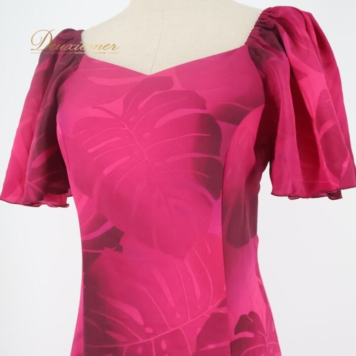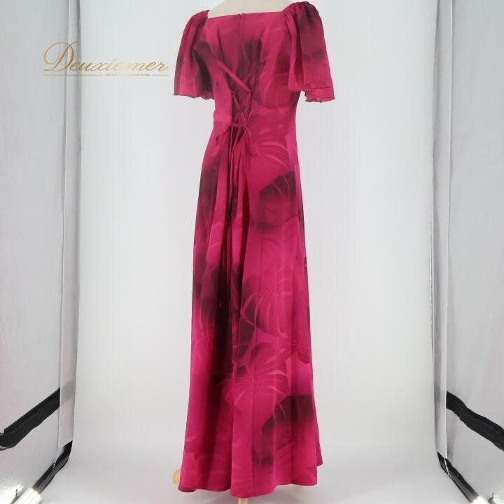 フラダンス 衣装 ワンピース ドレス パンドール ピンク系 Paondor 日本製 ロングワンピース 編み上げ モンステラ柄 綺麗 上品 かわいい 鮮やか 華やか 明るい おしゃれ ハワイアン アロハ ハワイアンプリント フラ ダンス レッスン 練習