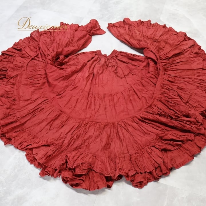 #ベリーダンス #ジプシースカート #ダンス衣装 #コットン100 #赤茶色 #ボリュームスカート #シンプルデザイン #ウエストゴム #ダンススタイル #エキゾチック #女性ファッション #安心素材 #パフォーマンス衣装 #フォークロア #トルソー #マルチコーデ #ロングスカート #アウトドアイベント #ダンスレッスン #ENUTSU