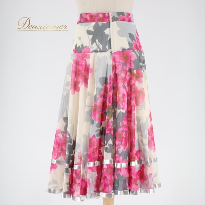 #社交ダンス #ダンス衣装 #スカート #ファッション #花柄 #ウエストゴム #ポリエステル #ストレッチ #グレー #ピンク #ホワイト #ネイビー #女性用 #トルソー #ダンスコーデ #ダンススタイル #衣装選び #豊富なサイズ #プリーツスカート #ダンス用 #ENUTSU