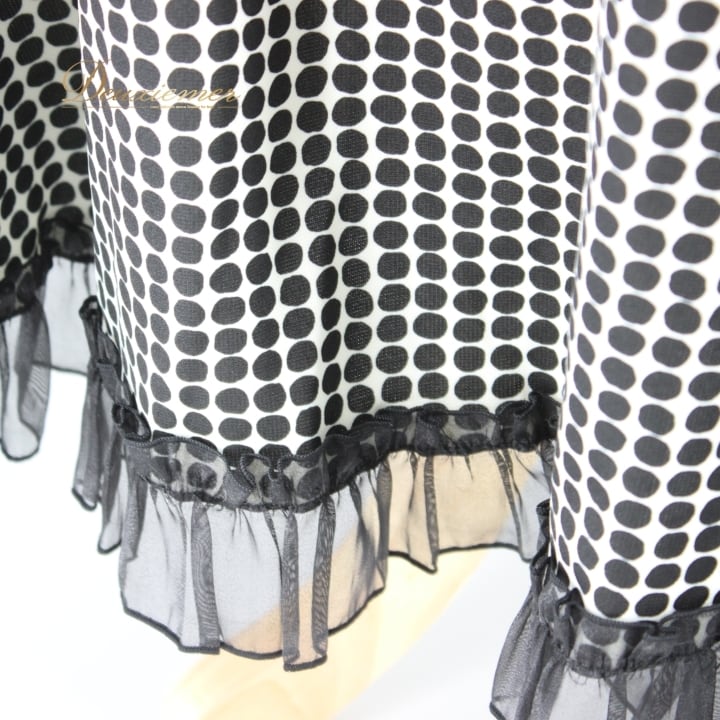社交ダンス 衣装 スタンダード スカート レッスンウェア オールシーズン 水玉 ドット 黒 白 ブラック系 ホワイト系 フリル 練習着 バイカラー レトロ かわいい スカート丈89.5cm ゴムウエスト 伸縮性 有り ドット柄 ダンス衣装 かわいいデザイン おしゃれ 練習用 フレアスカート トレーニング用 カジュアル コーディネート 安い